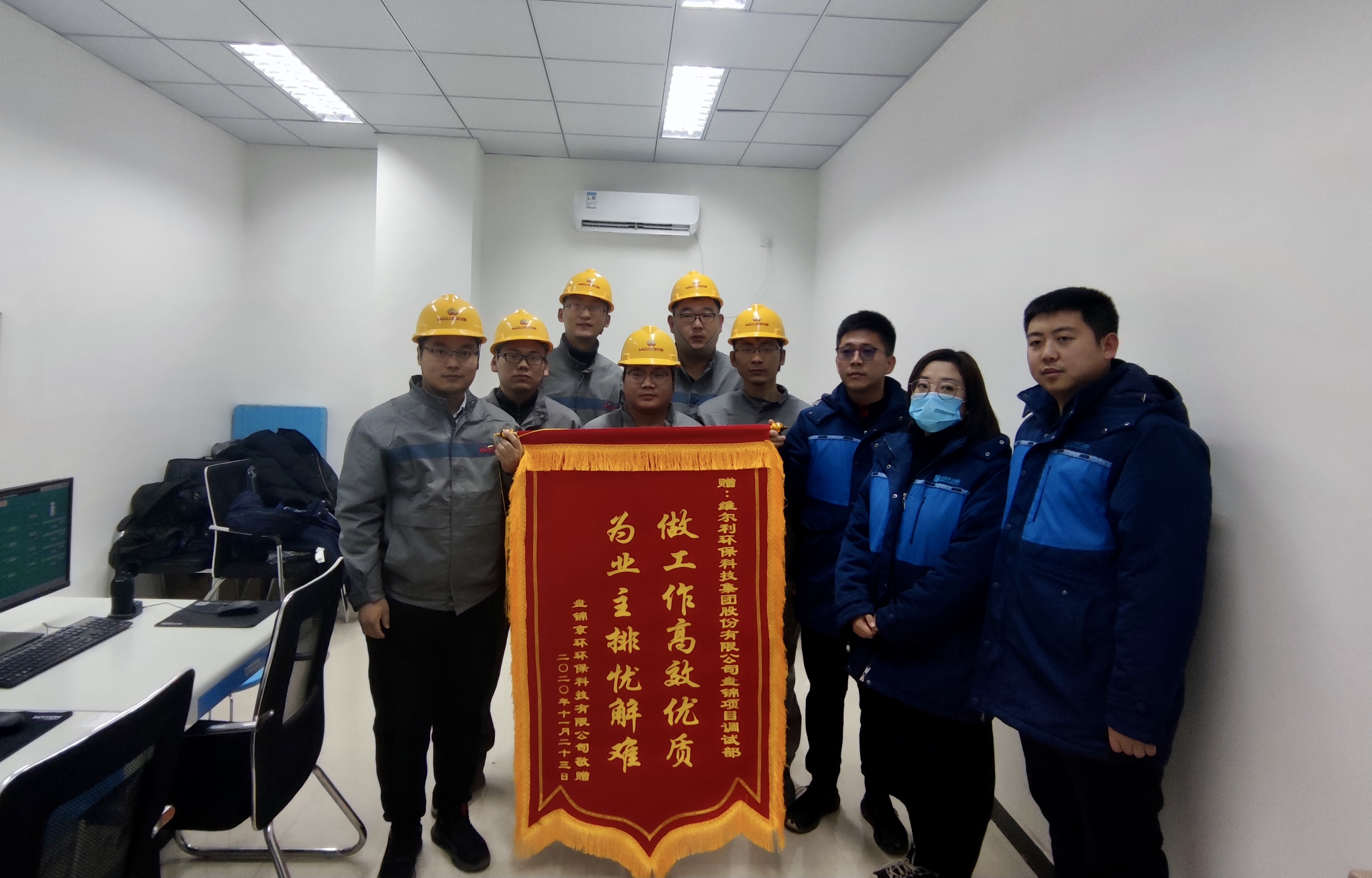 目前,本項(xiàng)目順利進(jìn)入試運(yùn)行階段,不僅減輕了現(xiàn)場滲濾液積存液處理的壓力,更為盤錦市創(chuàng)建市級“污水零直排區(qū)”提供了有效的技術(shù)支撐。為此,業(yè)主盤錦京環(huán)公司特意給維爾利盤錦項(xiàng)目團(tuán)隊制作了一面錦旗,以感謝維爾利團(tuán)隊的辛勤付出。在今后的項(xiàng)目上,維爾利團(tuán)隊將繼續(xù)發(fā)揮過硬的技術(shù),為業(yè)主提供更優(yōu)的服務(wù)。