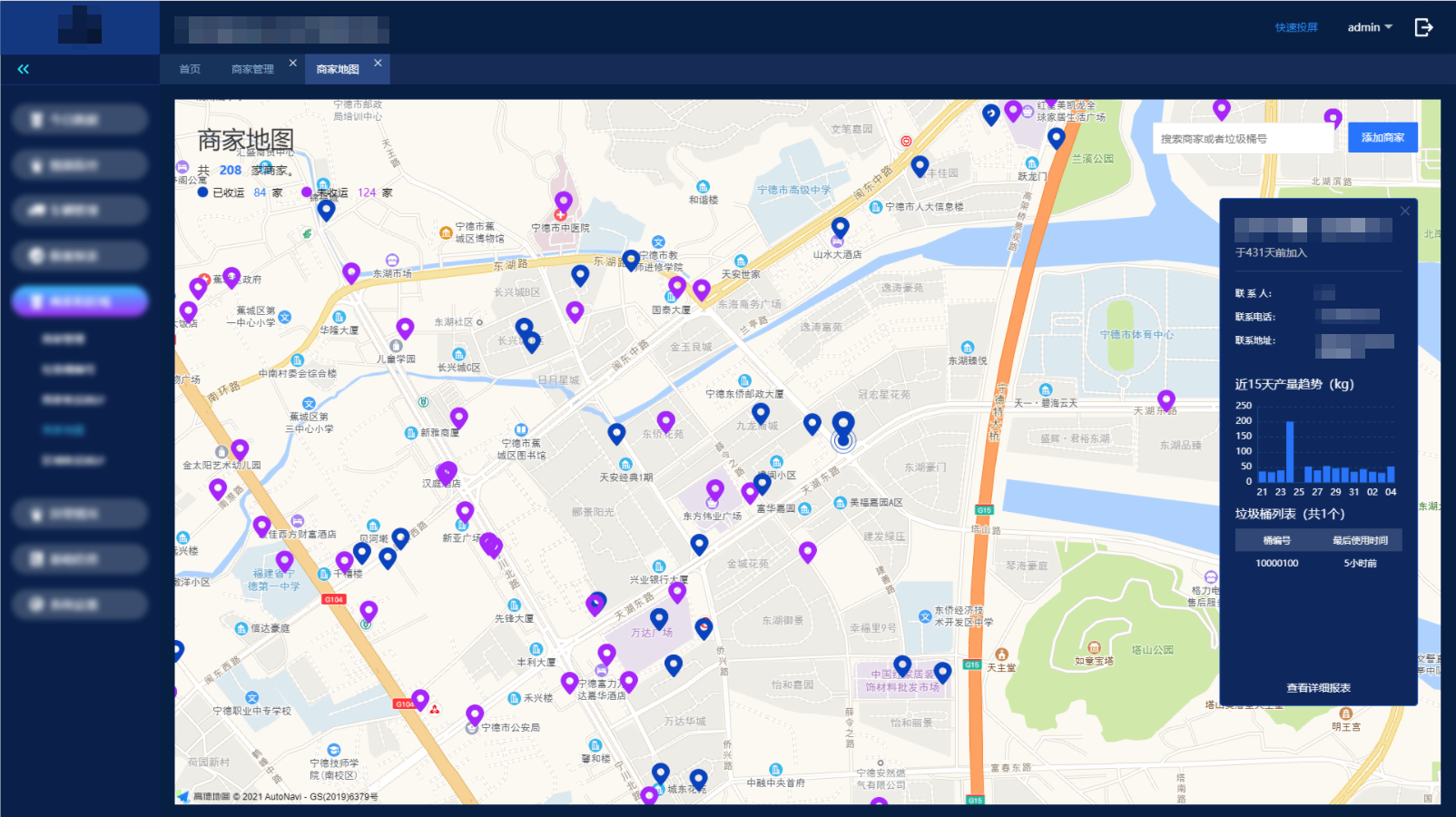 建立數字化檔案,從源頭管理餐飲商家,提升餐廚垃圾質量,處置廠提油率較平臺使用前增長0.3%,項目年收益增加近200萬元;