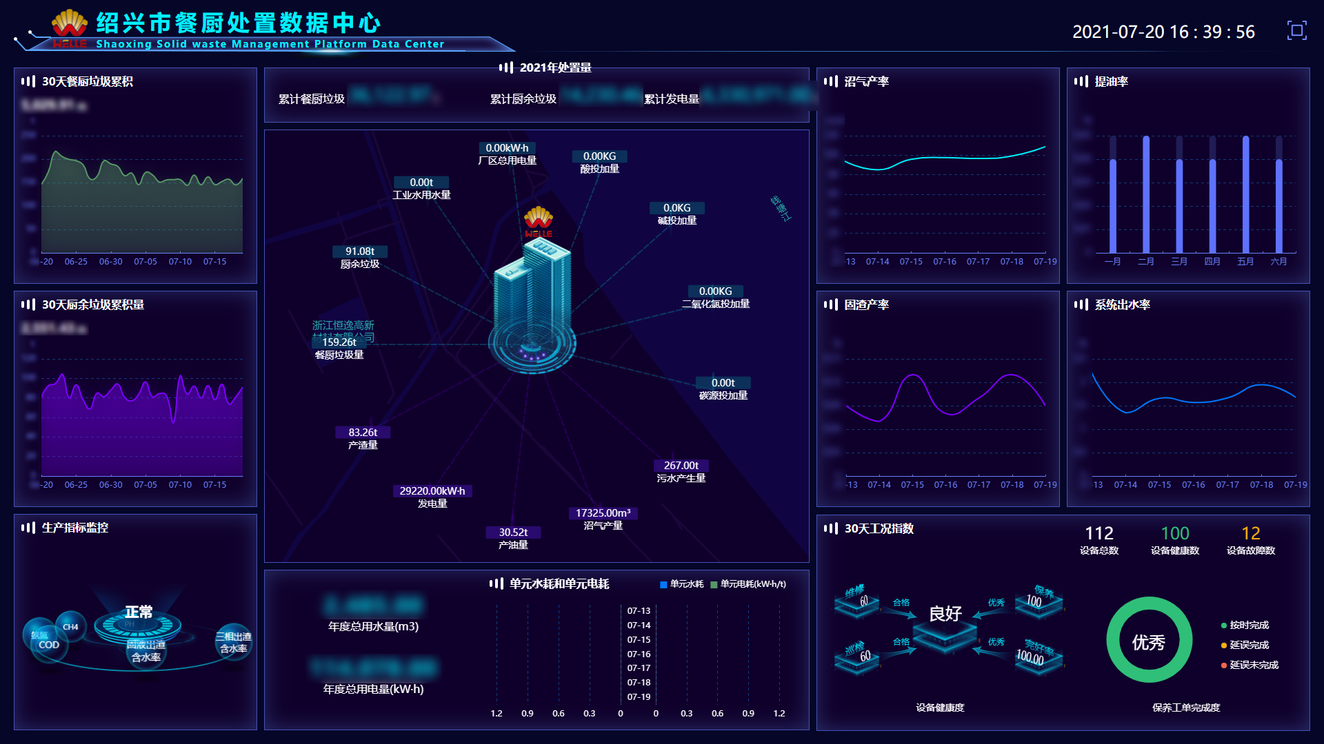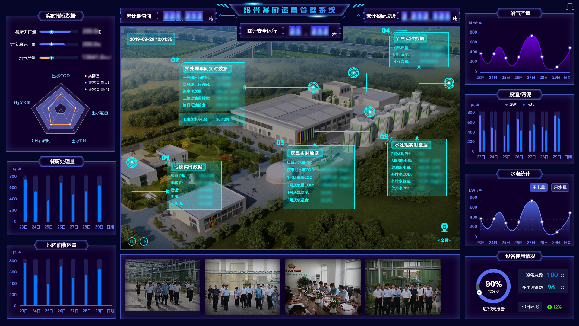 建設數字化的餐廚終端處置廠,通過智慧化生產運營管控體系,整合2D/3D動態擬真工藝中心、遠程工控、數據監測、視頻監管、智能預警、移動巡檢、設備管理、能耗物耗管理等功能,實現處置廠全局態勢感知、智能聯動、智慧決策提高處置和資源化產出效率,減少生產事故,實現降本增效。