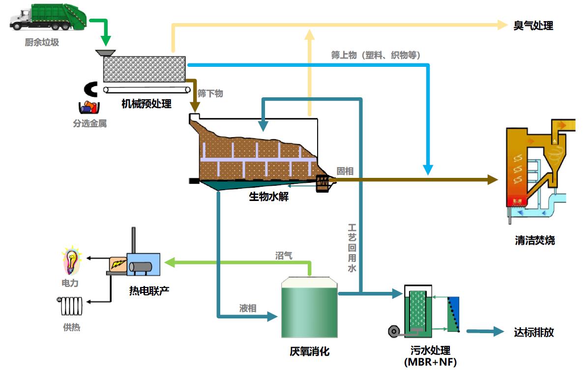 The processing process of this project is: "mechanical pretreatment + biohydrolysis + anaerobic digestion + biogas power generation +RDF utilization".